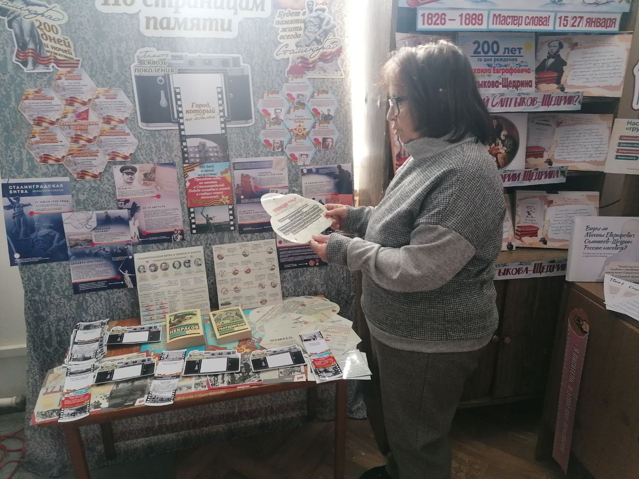 Посетители библиотеки, погрузившись в атмосферу информационной выставки, смогли ощутить величие подвига советских солдат 🎖️. Заведующая библиотекой, Беркутова Г. М., предложила гостям поделиться своими чувствами и размышлениями о значении Сталинградской Победы для современной России 🇷🇺.