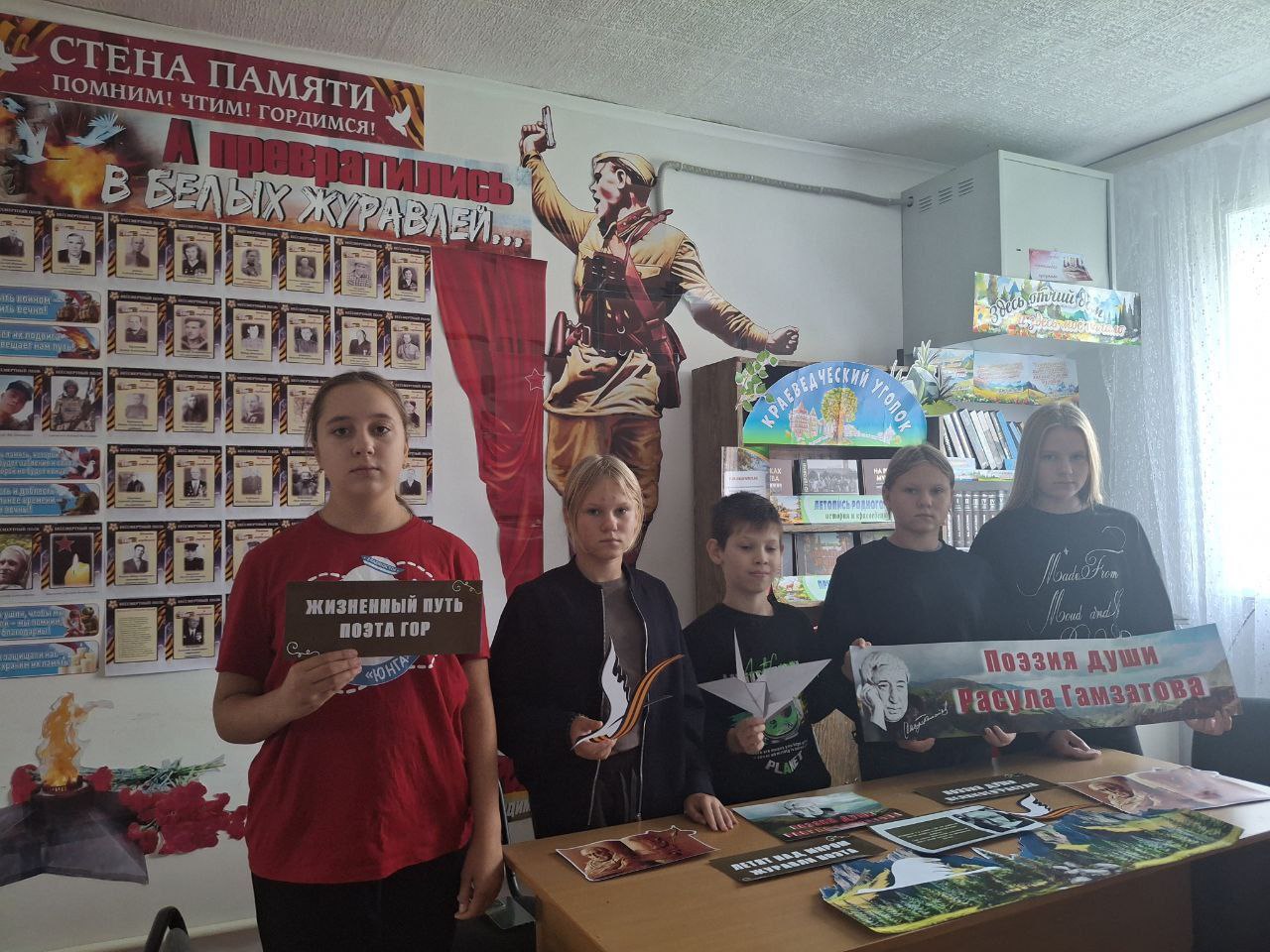 Особое место в подготовке к акции заняло оформление уголка поэта Расула Гамзатова,автора знаменитого стихотворения «Журавли». Его бессмертные строки живут в сердцах каждого.